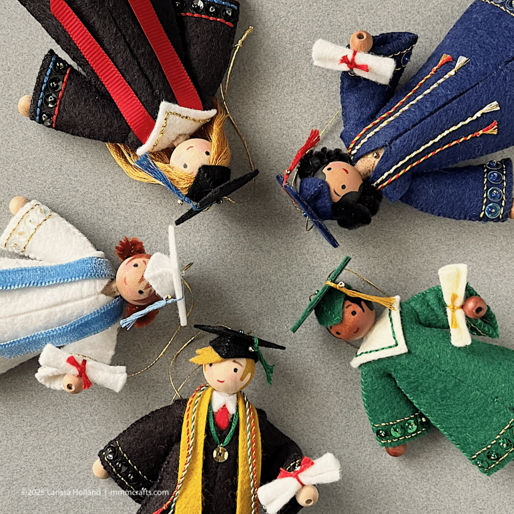 Love this pattern! My granddaughter is graduating from High School and she would love this! I just finished the 12 Days of Christmas series and am working on the Ebenezer series (Scrooge is complete.) I’m having such a great time making these little creations. I love your idea for turning these into Harry Potter characters! I’m going to have to give that a try for sure. Thank you for sharing your creativity and lovely patterns.