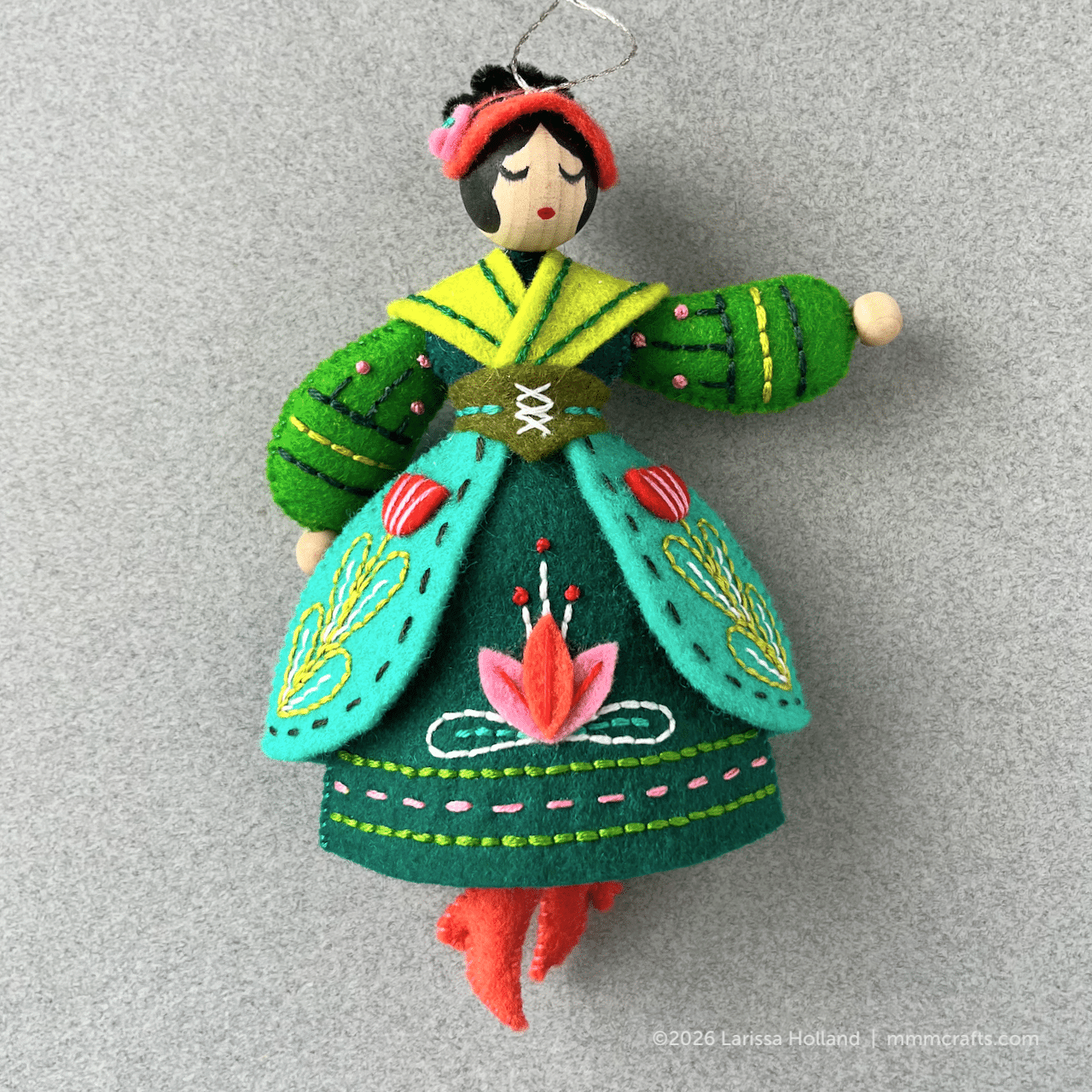 BELOW is the color guide for my Emerald Lady Dancing using Felt On The Fly’s beautiful felts.