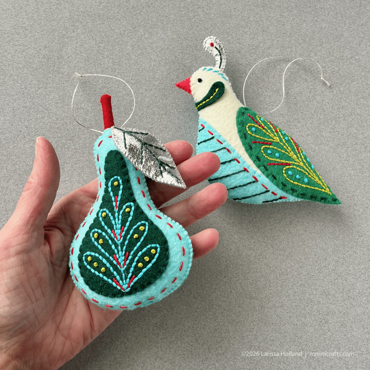 TO BUY: Twelve Days Ornaments patterns are available exclusively at mmmcrafts.etsy.com.