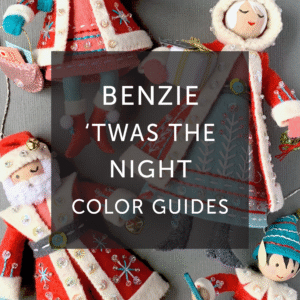 You can use your own favorite colors or coordinate with your Christmas decor. I’ve seen sets in every color combo imaginable (tagged on Instagram) and never one I didn’t like. However, I know that picking colors can be intimidating and stressful to lots of folks. Worry no more! I always make samples in delicious Benzie color combos and share the color guides right here, along with handy links to buy the felt/floss kits: