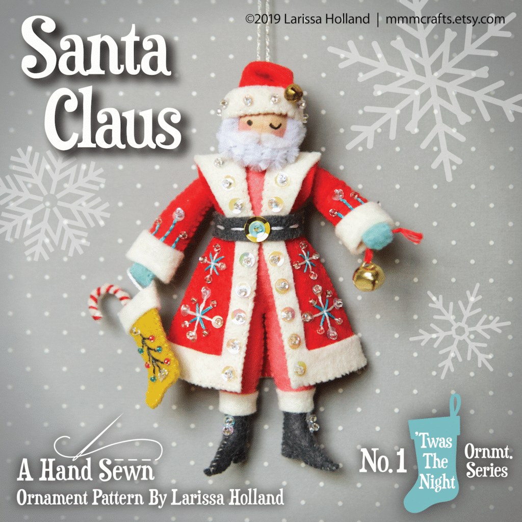 My ‘Twas the Night Ornament Series is a set of heirloom hand-sewn ornament patterns inspired by the classic 1823 Christmas poem, A Visit from St. Nicholas, by Clement C. Moore. Most folks know its famous first lines: